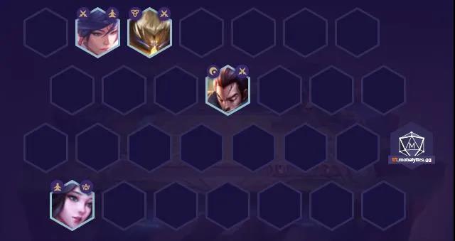 7级没有什么好提升的,赵信一直不来可以多搜几波,七级三费很好拿,搜到赵信二星再上八,八级三费概率也很高,八级慢慢凑齐阵容,赵信、卡莉斯塔追到三星阵容大成,注意盲仔对位基本没有天敌。