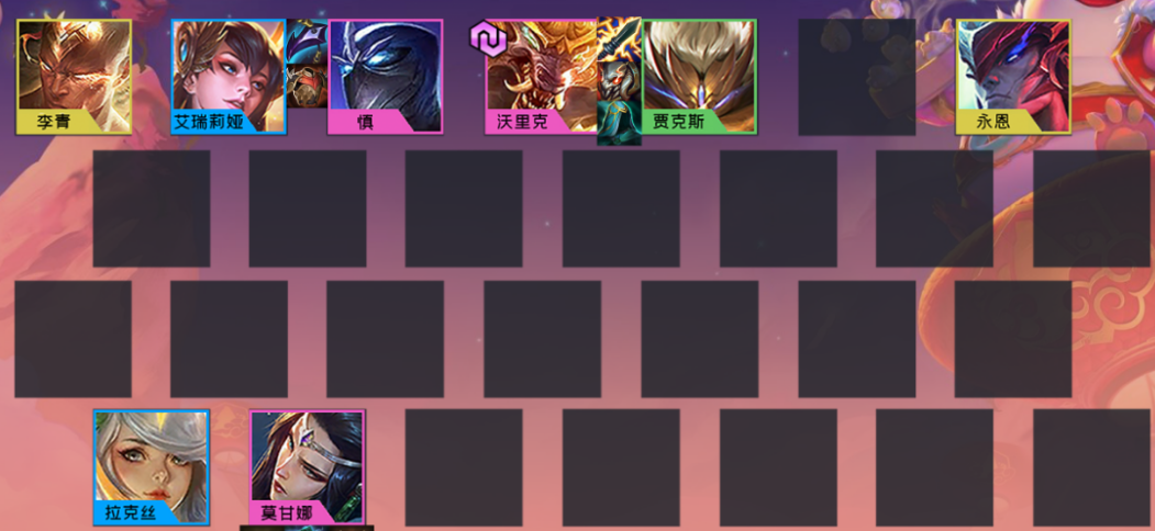拉克丝/慎/莫甘娜/李青/艾瑞莉娅/沃里克/贾克斯/永恩