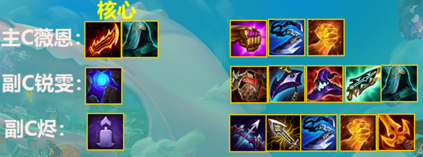 副C烬:有夜幽转职的情况下才给选秀拿装备,不然选秀优先考虑辅助装(圣杯,旗子)