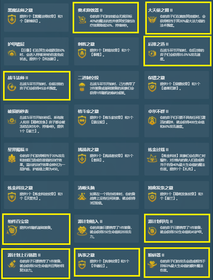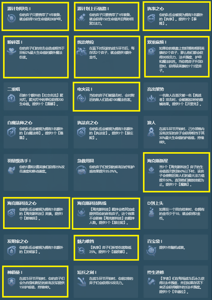 增加了【海克斯科技】、【微光首领】、【强袭战士】以及【执事】