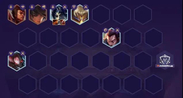 决斗阵容自带叠加攻速,优先拿反曲之弓尽可能多的合成羊刀,决斗加羊刀攻速瞬间拉满,攻速不好抢或者没出攻速也可以考虑大剑,优先准备赵信装备饮血、复活甲。