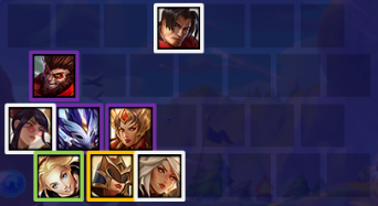 非常考验运营手法,前期尽量打五连胜,装备不用等,有什么合什么,建议骑士超能街机或者3剑士过渡,3剑士是版本最强过渡,后续根据羁绊搭配即可,另外2星亚索带狂徒很关键很重要,所以尽量速度上八人口找亚索。