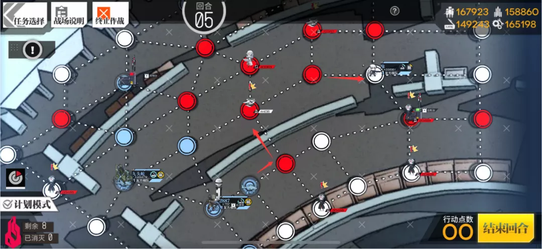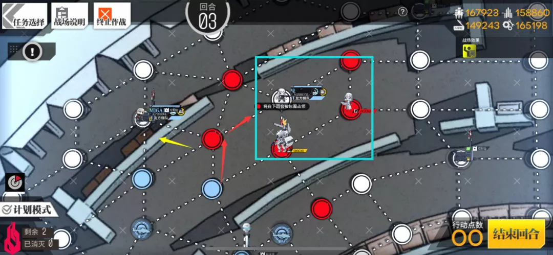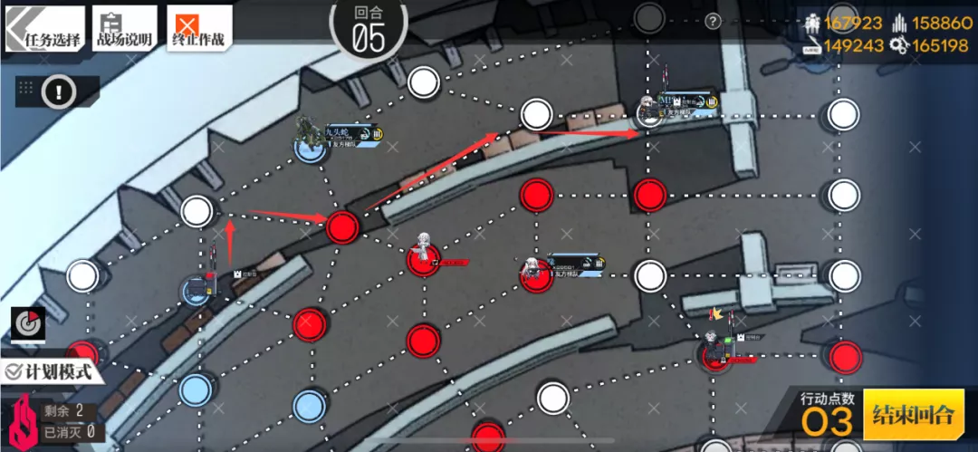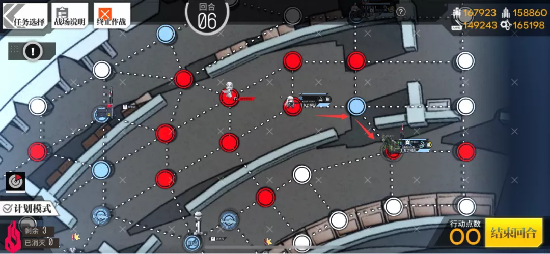 第五回合,让16哥走到另一处控制台,这里如果还是用“顶掉”圣歌风琴的办法的话,那么就不要让16哥立刻破解控制台,等到喙和敌人站到第四回合的位置时再破解控制台