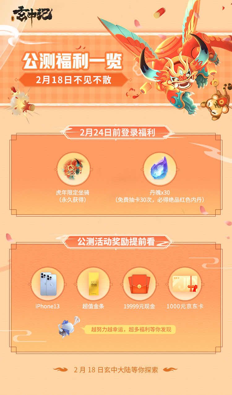 亲爱的驭灵者们,很高兴在春节期间,能够为大家献上一份好消息:《玄中记》手游公测终于定档啦!大家期待已久的公测将于2月18日正式与大家见面!