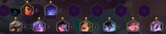 我们大约会在4-4阶段左右到8人口,此时就可以大搜一下了,整理出下边阵容。
