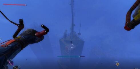 建议直接钩索下,降落伞有点飘,最后到达创作者房屋门口。