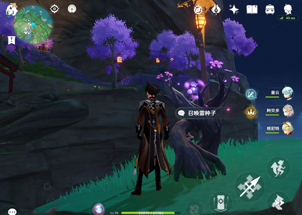 2、注意第二波和第三波流血狗都是我们用雷电将军打的,在打第三波流血狗的时候雷电将军打到中间会有一个类似于冻结的情况出现,打完以后继续找痕迹打最后一波后就要去神樱树下方的洞穴,注意洞穴需要雷种子才能进入。
