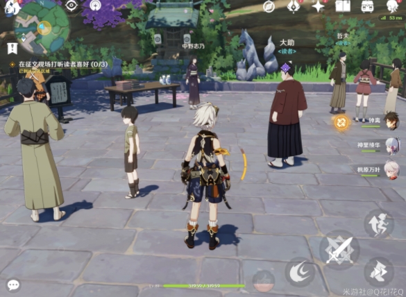 完成对话后到鸣神大社找八重子对话,再按照提示到村里打听八卦。