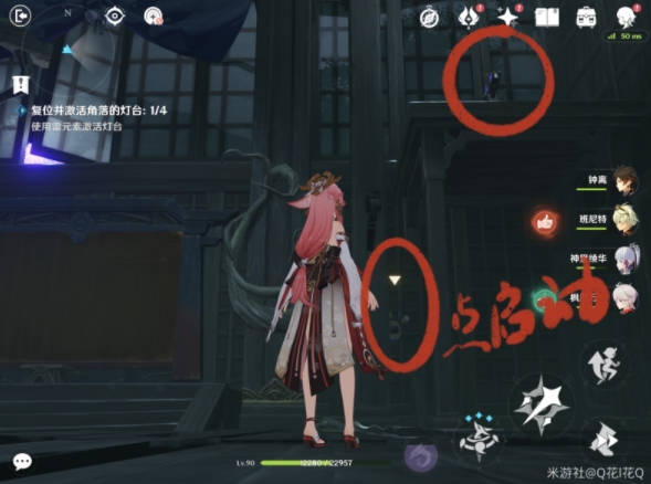启动开关后调整位置并使用雷元素点亮