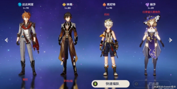 2.奶妈最好是班尼特(6命排除)和迪奥娜(能奶能盾)