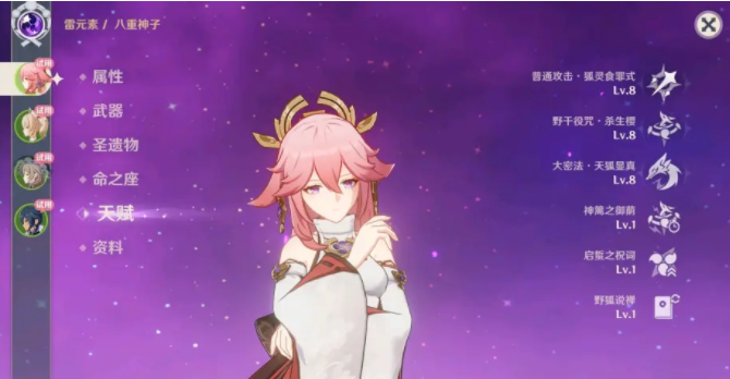 而后八重的第二天赋总会被忽略,叠精通不如叠双暴,但这个天赋或许会在草席反应实装后大大改变神子强度,在草系实装后,其与雷系进行的裂解反应说不定会大大提升雷系强度,到时候说不定精通的收益将大大提高,并且由于极快的雷击使得能够频繁触发反应,就算将八重当做副c,其强度也会大大提升。