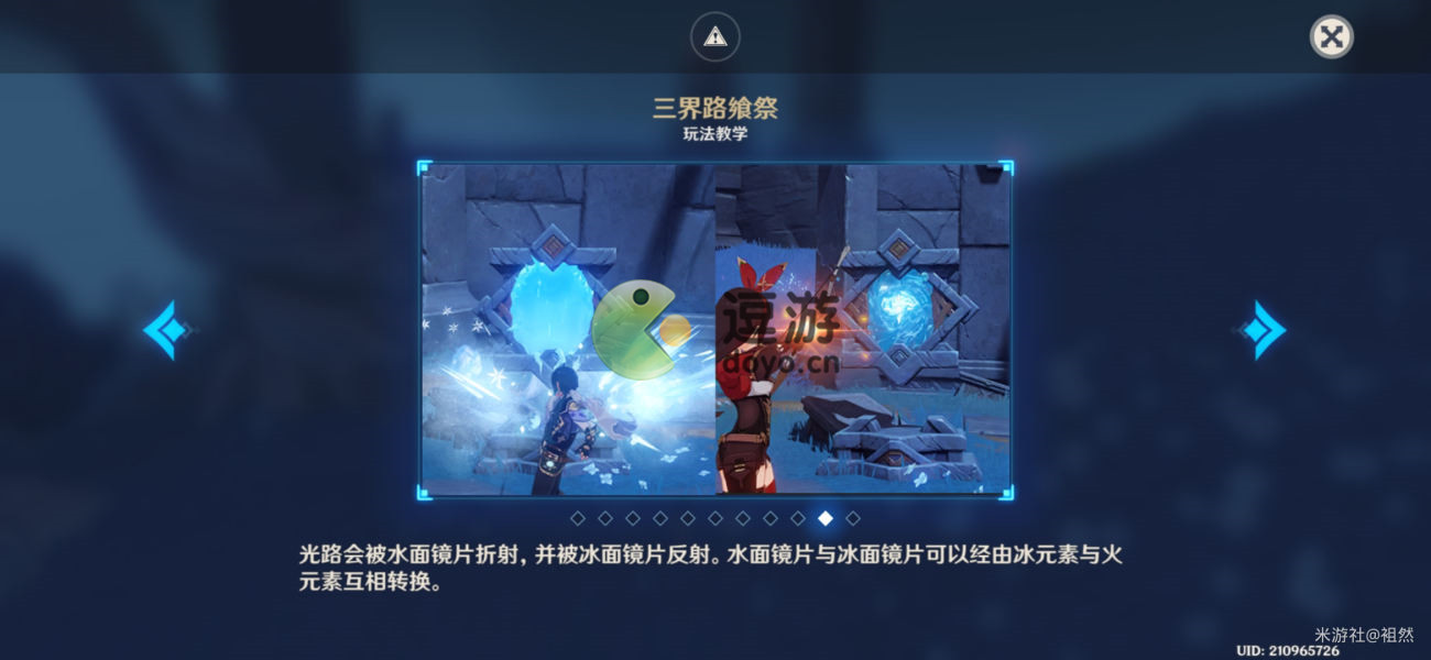 3.镜片性质可以通过冰火元素进行转变,冰镜进行反射,水镜进行折射,折射后的光线与镜片是垂直的。