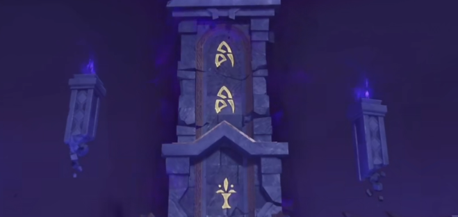 方法: 在进入虚界暗塔区域,可以看到左下方有一个小石塔,上面的纹路对应了高塔的答案,因此要通过启动虚界塔控制器,将塔上的花纹达成一致。