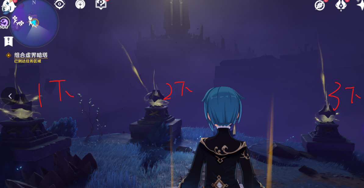 4.坐着冥鱼群前往虚界暗塔,穿过加速圈可以看见一个金宝箱,打死两个水冰法师,打死以后跟雷灵走,或者不打直接冲过去。接下来跟着雷灵走,到达目的地需要启动三个控制器(三个控制器需要五个石头,五根草还有十个亮之宝石)根据石碑解锁。