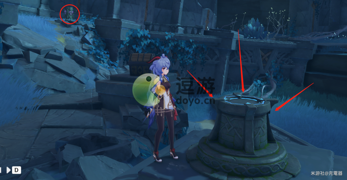 3.做这个五个炸药桶挑战,做完之后标红圈的那个雷元素石碑会解锁