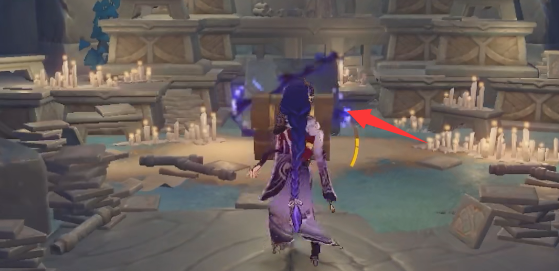 2、解决掉周围的怪物以及宝箱之后,利用雷属性点亮这个三个装置,石门就会自动打开。