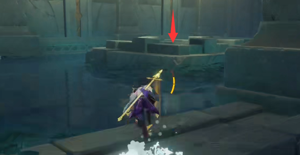 1、在渊下宫锚点平台,来到下图所指的最边上,往箭头方向飞行。
