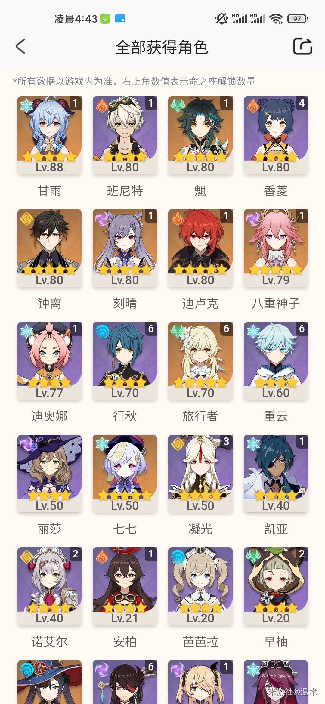 6.打火咏者用芭芭拉就好了,80级11级大,A死他,两个龙蜥带钟离、俩c,亲测公子最优,