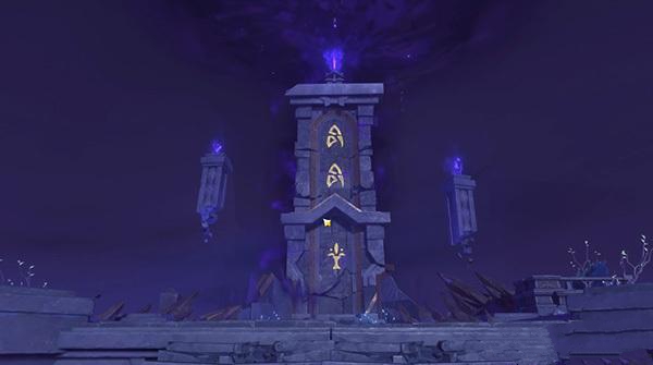 玩家来到虚界暗塔之后,就可以从左边石碑的提示里洞悉暗塔上的符号顺序,不过需要一个一个打开。