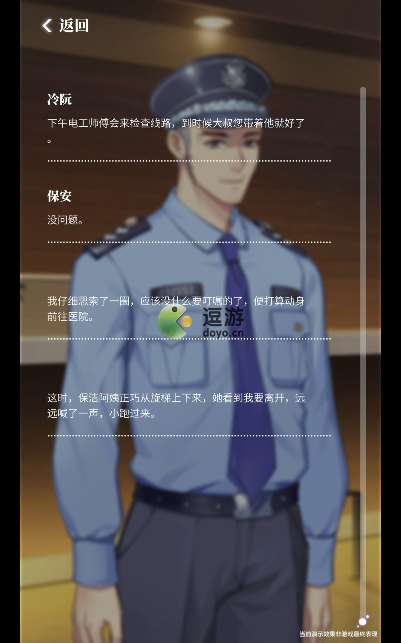 4、2-5:去陆泽房间质问,到达房间门口,文本框提示“房间内有人说话,等一会儿,主角会自己窃听