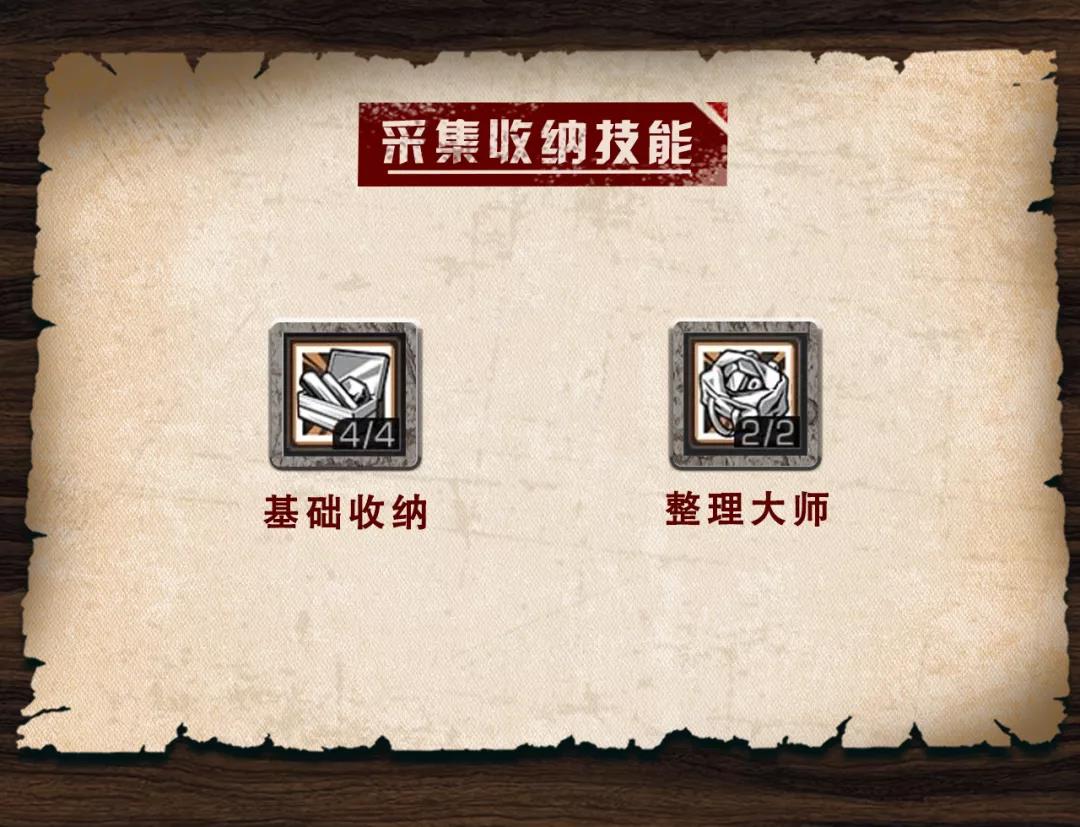 想要从根本上提升收纳能力,推荐把基础收纳和整理大师技能点满,可以增加各种物资,在背包和柜子内的叠加数量,收纳大师必备技能!