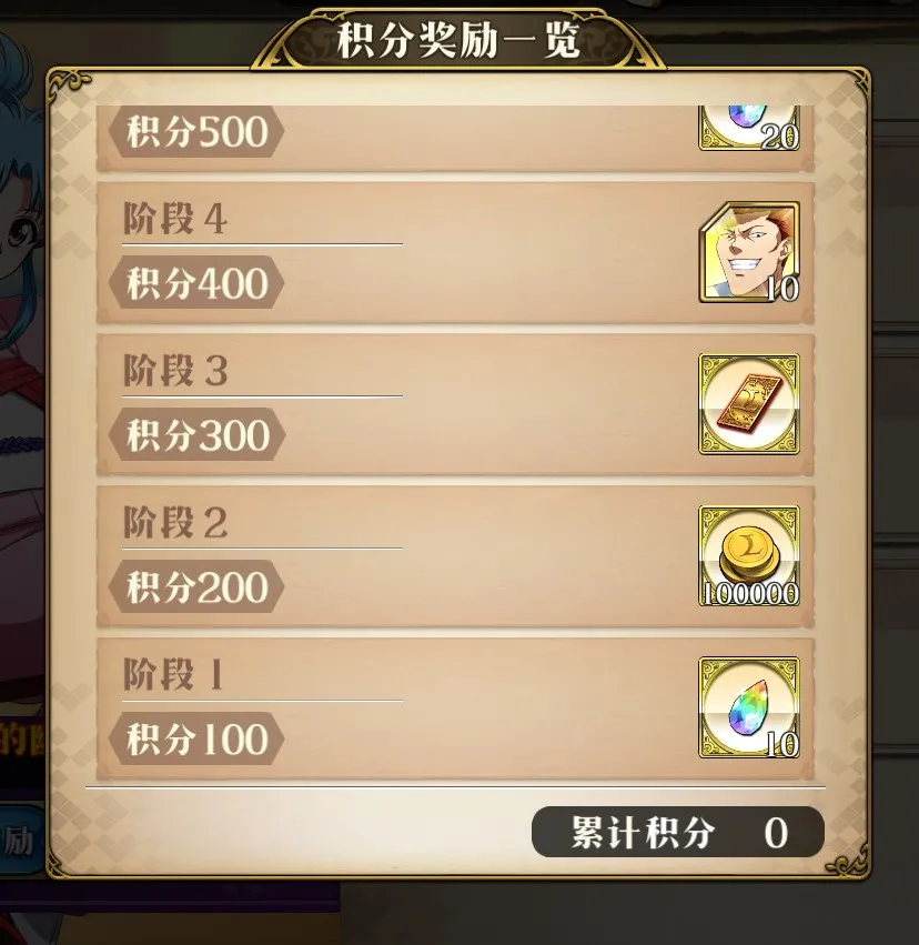 通过挑战关卡和积分关卡,可获得积分[时之砂],积累指定数量的[时之砂]即可获取对应奖励。