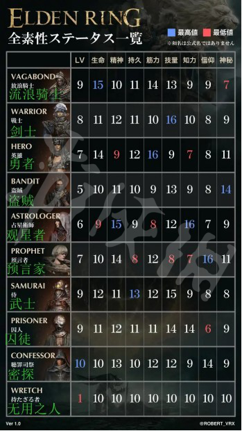请注意,职业只影响开局3-5小时左右的游戏体验,不是说玩了战士就不能学魔法了,所以职业选择基本就图一乐,武器选择才是需要慎重选择的地方。