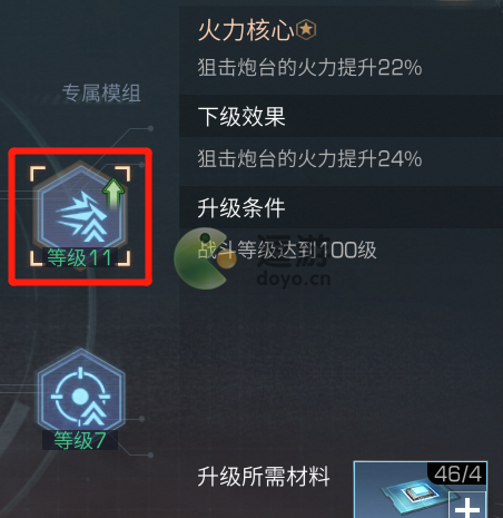 ①火力核心:升级火力核心模组可以提升狙击炮台的火力,升级至满级后最高可提高32%火力