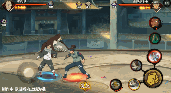 “随行状态”下,摩托伊会指挥猫头鹰抓起对手,并在对手脚下扔出起爆苦无,从而打出一波联合攻击。