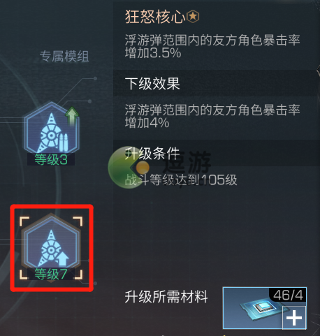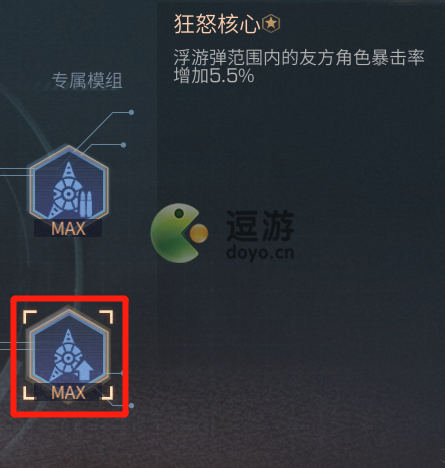 ②狂怒核心:狂怒核心则可以为浮游弹范围内的友方角色增加一定的暴击率,升级至满级后最高可增加5.5%的暴击率
