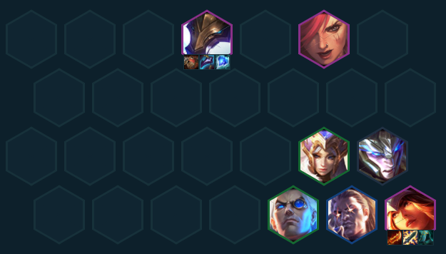 羁绊组成:6海克斯科技2强袭战士 2格斗 2执法 1宿敌