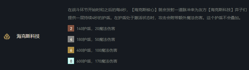 主羁绊海克斯科技,6海克斯在战斗开始及之后的每6秒提供400的护盾,在护盾期间攻击还能附带100魔法伤害,对于希维尔来说,技能自带弹射可以不停触发该buff造成巨量伤害。比较适合打ap阵容,就算是遇到现在大火的烈娜塔也有一战之力,希维尔也是属于需要启动,但越打伤害越高的体系,唯一比较怕刺客,单C要很注意希维尔的站位,被切到就没输出了,总的来说海克斯体系低费棋子很多,过渡很平滑,比较适合新手玩家。