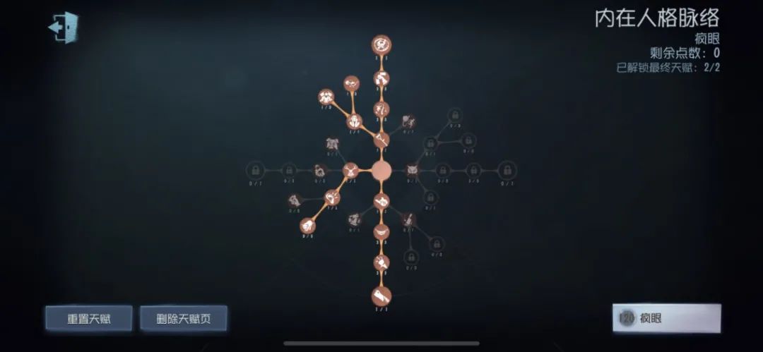 这套天赋是疯眼的常用天赋,在携带【张狂】的情况下,疯眼开局命中求生者后可以快速解锁一阶技能【便携控制器】来进行封路。