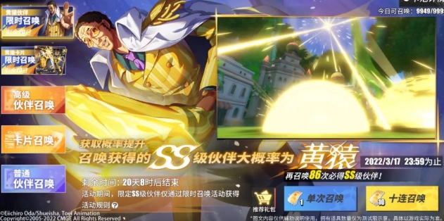 -新SS伙伴黄猿限时登场!可通过限时召唤获得新伙伴。