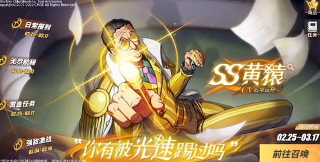 航海王热血航线黄猿是什么属性 黄猿兑换码及技能详解,航海王热血航线黄猿是什么属性?兑换码是多少?航海王热血航线黄猿属性是技哦,拥有很强力的连招输出呢,那么该角色如何获取呢,具体兑换码内容下面来告诉给大家吧~航海王热血航线黄猿兑换码及技能航海王热血航线黄猿技能详情介绍伙伴属