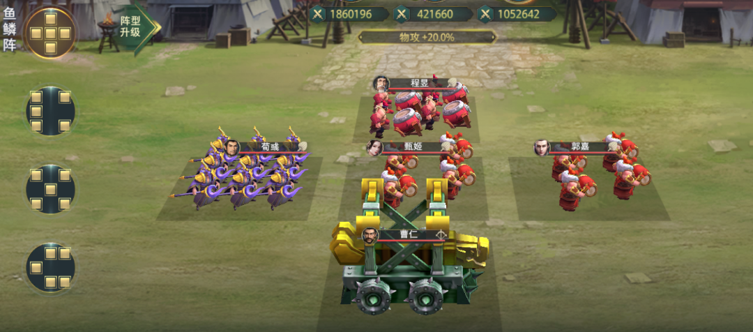 这个配置,全军5个武将进场士气25点(5个神级激励25点),其中郭嘉、程昱、甄姬可以替换为任意鼓将,荀彧也可以替换成其他输出(全体输出最好),如果替换成其他国家的武将,队伍就少一点国家加成。由于目前魏国强力全体输出武将司马懿、贾诩等还未开放,魏国PK国家队用荀彧暂时做主输出。