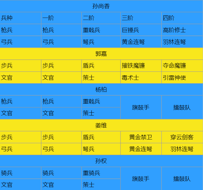 诸葛亮以及姜维在第一回合就释放了技能,若需要更高的坦度,可以把鼓手换成刘备以及黄月英。