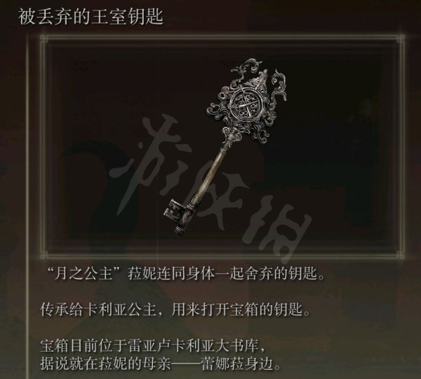8.人偶说话后向前探索,击杀灾厄之影后菈妮会给予玩家一把钥匙用来开启满月女王boss房的宝箱。(这里不要急着去开宝箱)