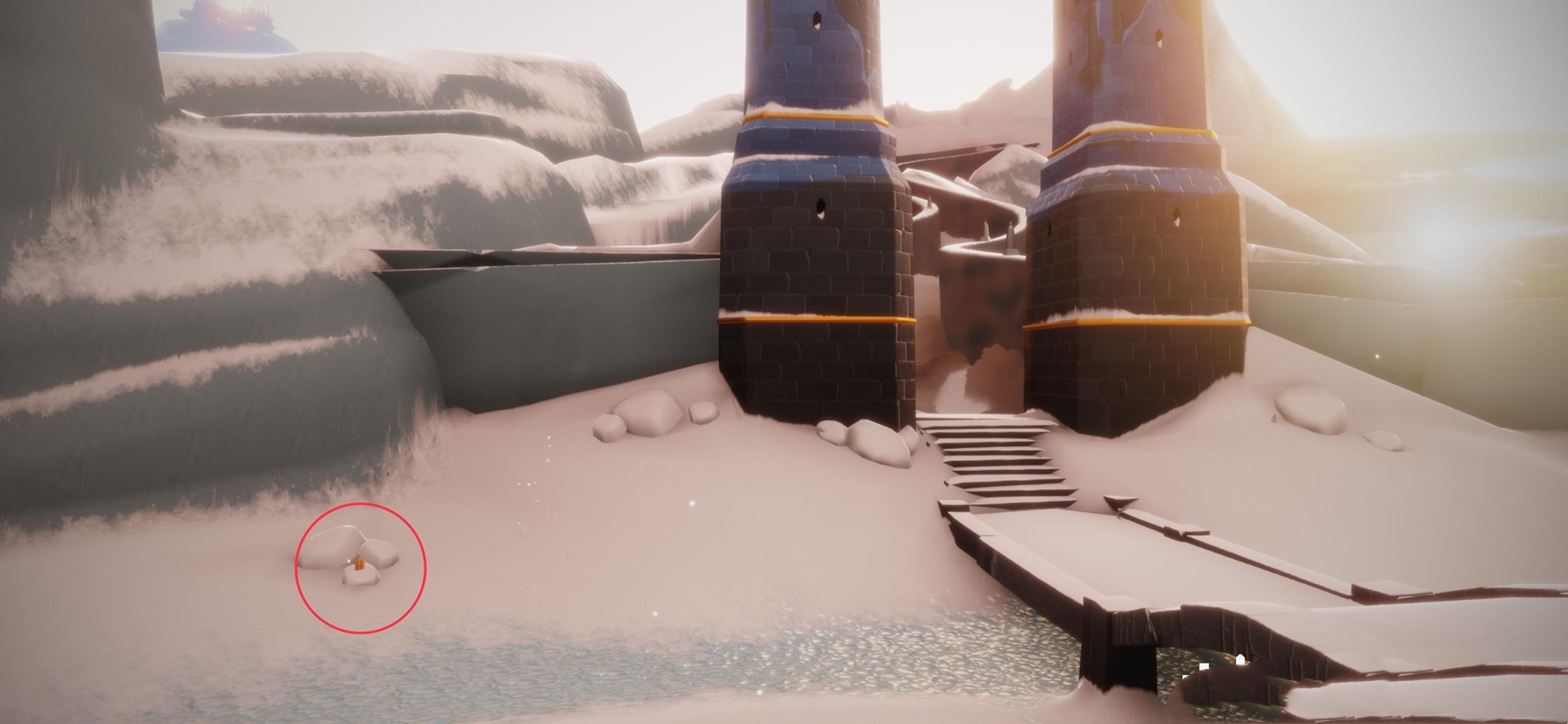 季节先祖的位置也是非常明显的,基本上每个地图都有季节先祖的分布,大家在刚进入的初始位置会看到一个发光的石碑,靠近之后就会出现先祖。季节先祖的石碑面前有一堆感恩季蜡烛, 这就是区分和普通先祖的重要标志。