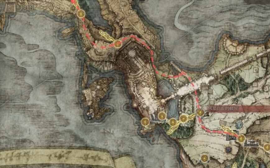 首先是南方形似澳袋的「啜泣半岛」,从关卡前废墟出发,往东过桥后,沿着大路一直向南,即可看到啜泣半岛的石碑地图碎片,注意路上经过门型建筑时会有一些弓箭手,建议S型走位。