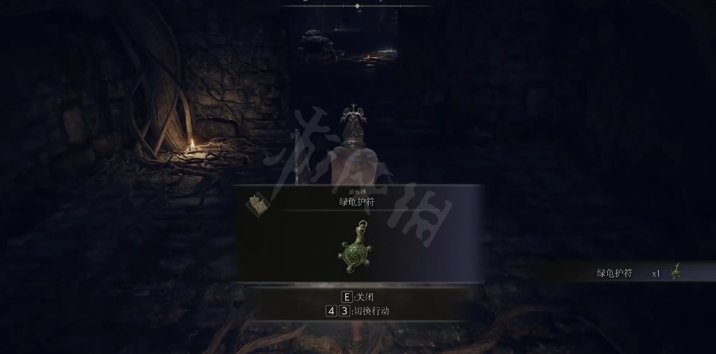 走到深处出现一个宝箱,绿龟护符就在宝箱里。