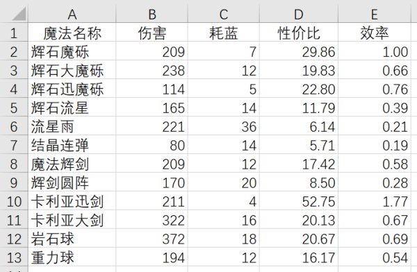 本攻略旨在仅从伤害效率(伤害:耗蓝量)的角度,为新手玩家选择魔法提供参考。
