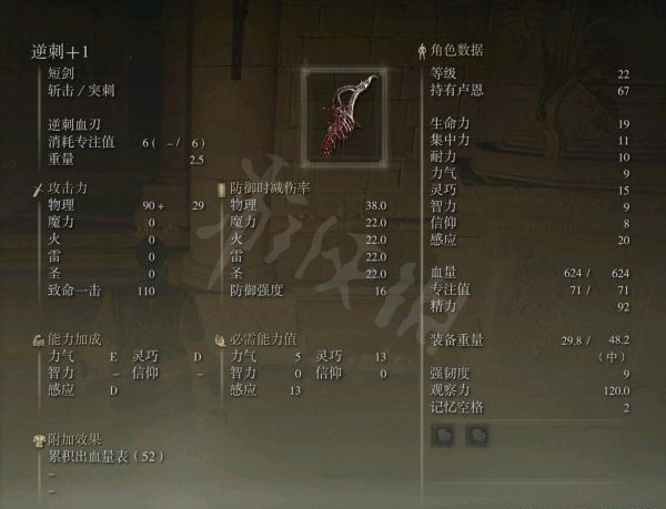 由于只是用作替补,选择方法可以随意,任意一把剑类武器附加战灰,鲜血斩击即可。