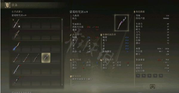 蒙格特咒剑,恶兆王的武器,拥有十分炫酷的特效战技,可打出火焰伤害,可做备选武器,不过碍于高额的灵活要求,推荐灵活感知双加的流派使用。