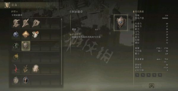 卡利亚护符,在高频率使用战技的套路中,效果拔群,可以在巨人伊吉处购买。