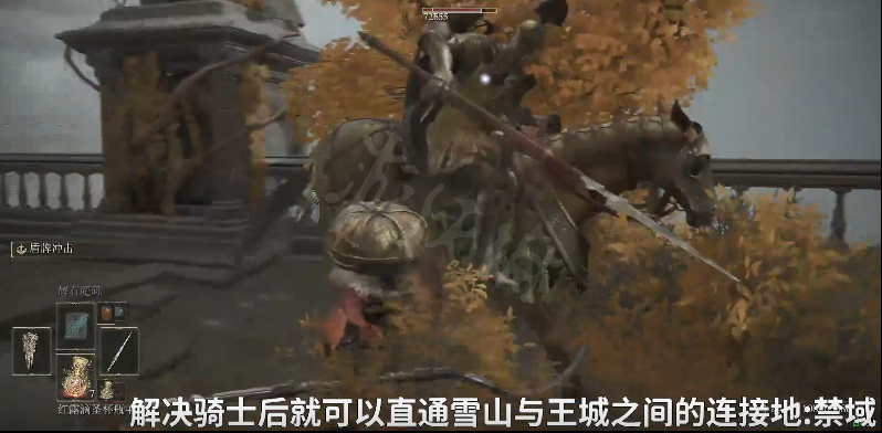上去后会遇到几个小怪和一个骑士精英怪,击败精英怪之后就可以前往雪山和王城的升降台。