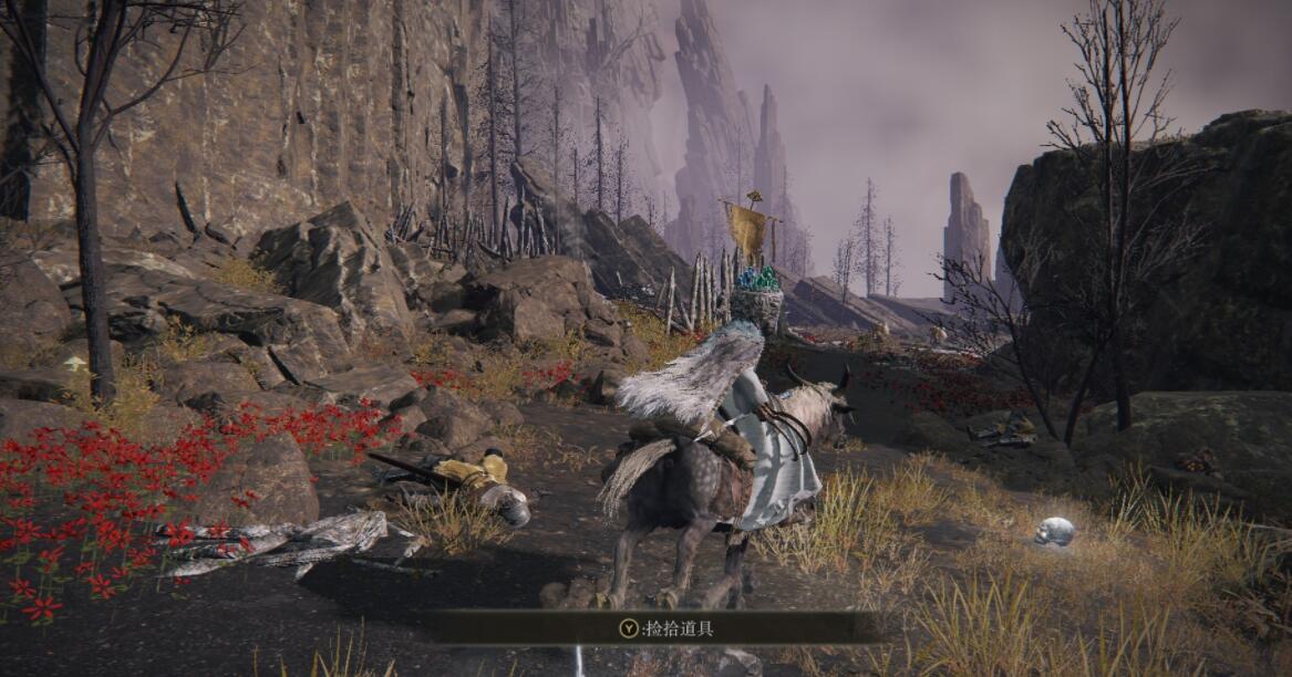 来到这里后坐一下赐福点消磨时间到晚上,暗夜骑士才会出现击败他就可以获得这个战灰了。