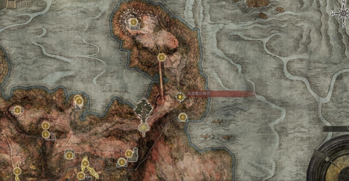 下面是直接获得拥有这个战技的战灰的获取方式,需要来到盖利德的雷恩魔法师塔,位置如下。