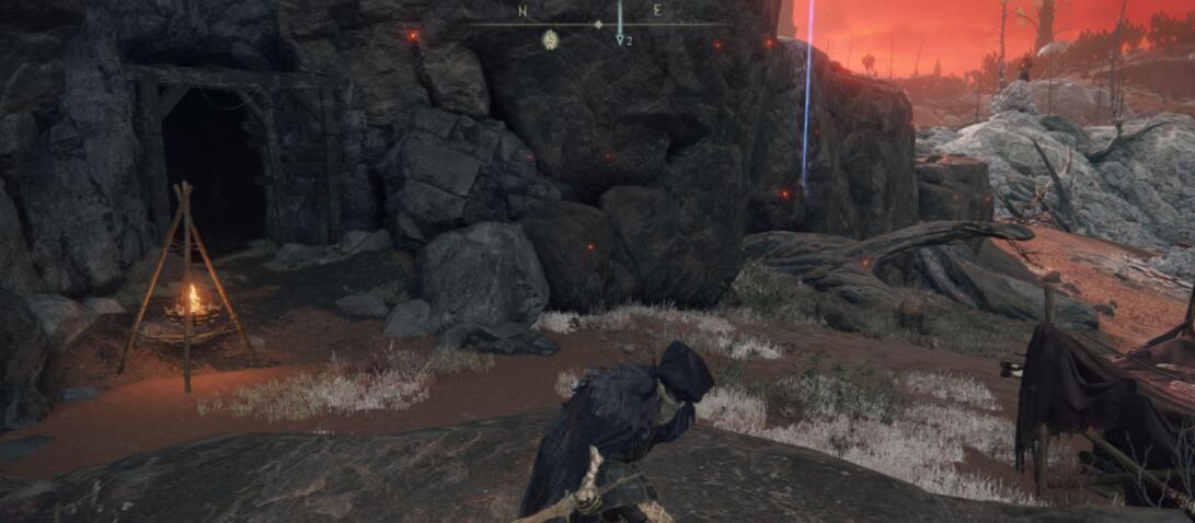 就是图示左边的矿洞,进入矿洞后,我们需要一直往BOSS方向走,走到另一端的出口,便可以见到壶哥。这个矿洞的BOSS掉落物我记得是名刀月隐,是一把法师打刀。