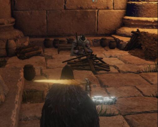 门口,上了木架子会有两个牛头士兵,干掉以后绕一圈就可以发现这个门,进入门,一直往里面走,然后跳下去,就会发现卖油壶制作书的商人了。